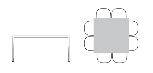 • Tabletops in porcelain enamel on steel and vertical grain teak VIEW ALL