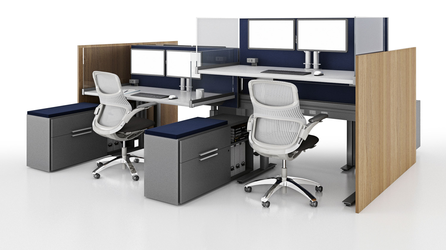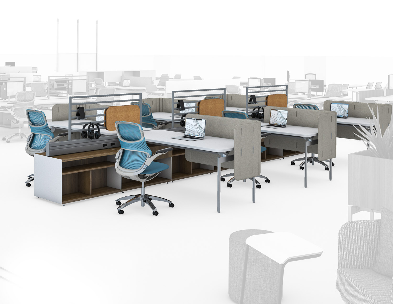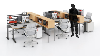 The freestanding, linkable or mobile Power Beam gives planning flexibility and range to address the ready-to-change mentality of today’s workplace. Continuous channels in the top and sides of the beam enable off-module freedom to position screens and task lights, or to support worksurfaces.