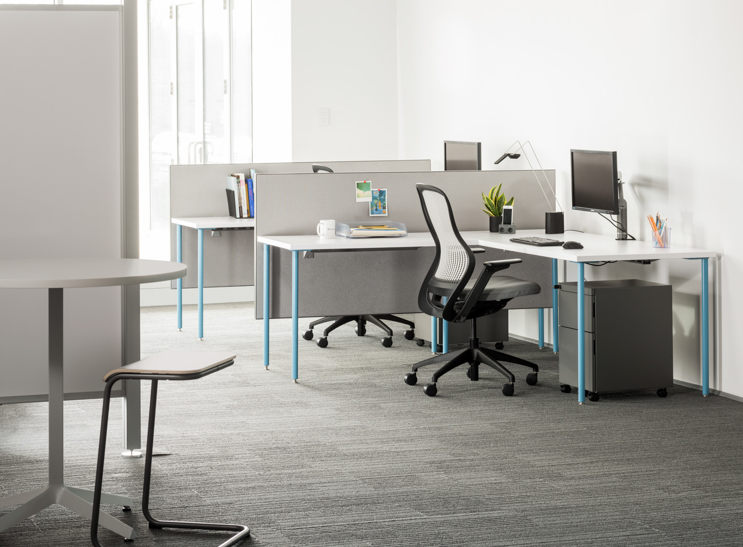 With options to add privacy screens, modesty panels or power components, Antenna Simple tables support multiple modes of working within a single work environment. A user-friendly linking feature and continuous power capability supports adaptable Assembly spaces.