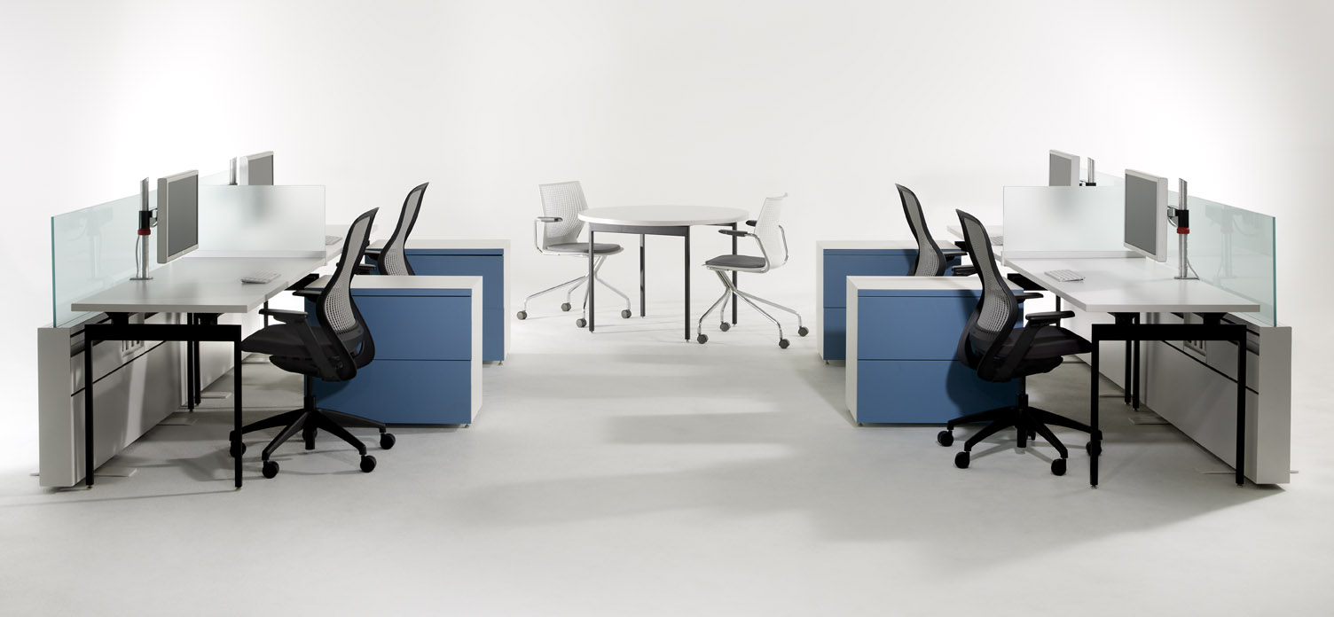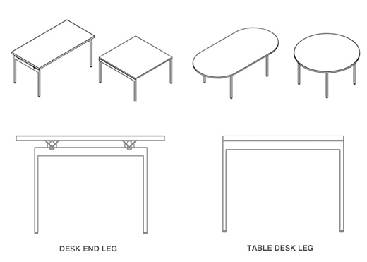 Options include two leg styles (Desk Legs and Table Desk Legs), four fixed leg heights, two adjustable height legs, and a vast selection of worksurfaces in varied sizes and shapes. Casters, screens, linking hardware and technology accessories expand the flexibility and functionality of Antenna Tables and Desks.