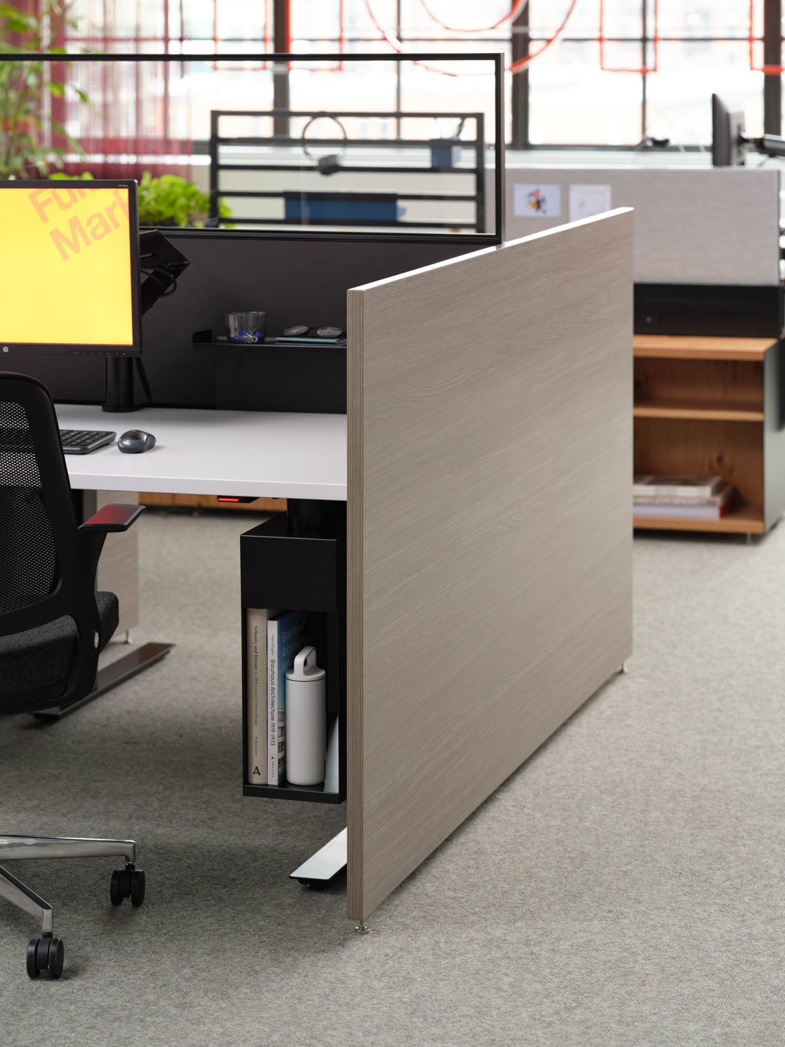 Antenna Hybrid Storage expands upon the Antenna Workspaces collection, offering new opportunities to shape space throughout the workplace. The elevated aesthetic unites wood shelves with slender steel side panels allowing for efficient planning in compact workstations. With freestanding individual units and an integral channel for wire management, hybrid storage can provide support for Power Beam, or stand alone in agile spaces.