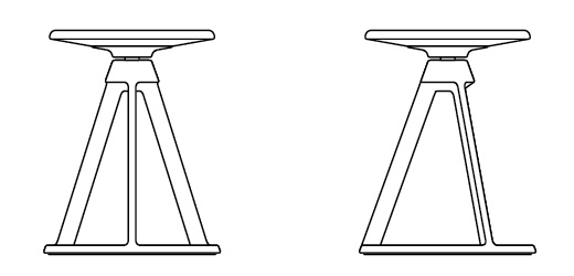 The geometric, elementary framework of the pieces is an interpretation of the familiar tripod structure; the conical base, unified by two concentric rings, guards against the potential for imbalance caused by an uneven floor, equally distributing weight so as to counteract the tendency of the stool's three-legged counterpart to wobble. The die-cast material is equally resilient to abrasions and dents, having been cast from the same material used for the foot of the Barber Osgerby Lounge Collection.