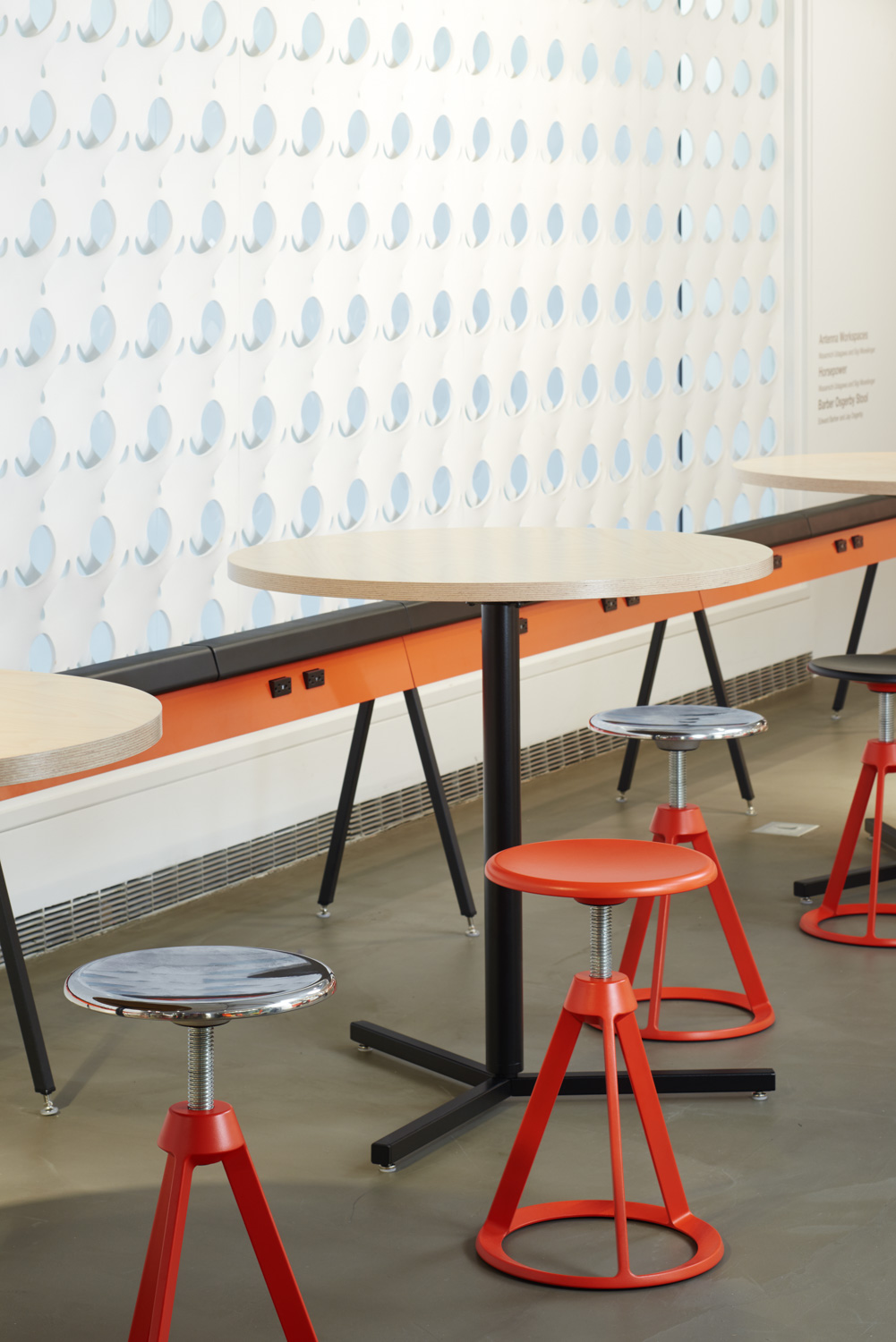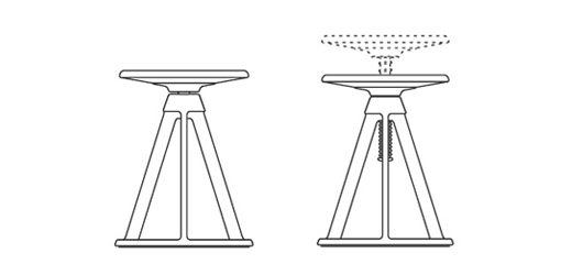Taking cues from the aesthetic principles of Modernism and pragmatic considerations of the height-adjustable stools manufactured for sewing professionals in the mid-century era, the Piton™ Stool and Table are equally well suited for industrial tasks and domestic settings.