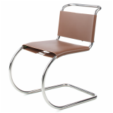 The origins of the bent-steel cantilevered chair are somewhat murky, but generally three names come up in the discussion. Marcel Breuer is widely credited with pioneering the exploration of the material, Mart Stam seems to be the first to conceive a “chair without back legs”, and Mies van der Rohe is remembered as the one who made it beautiful.