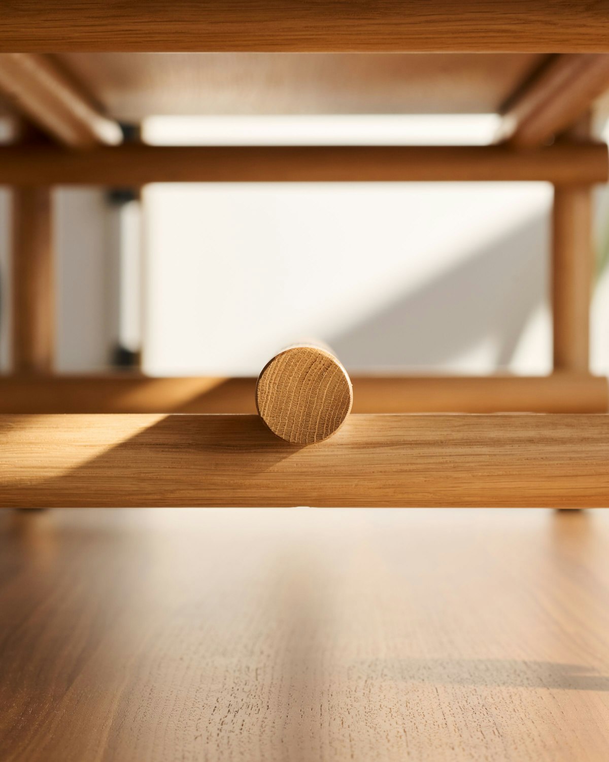 By rounding solid wood into cylindrical dowels, the face and end grain are both on view. “You can understand the piece of wood,” he says. “It’s not disguised. It’s there for you to understand again and again.”