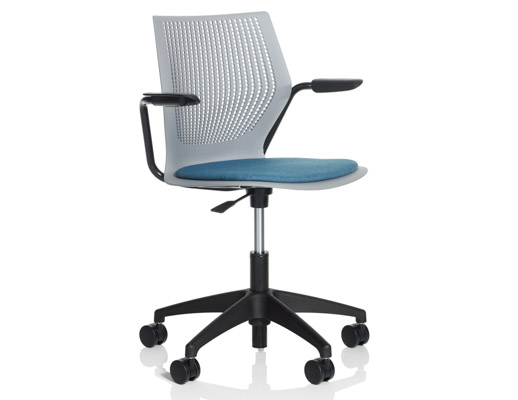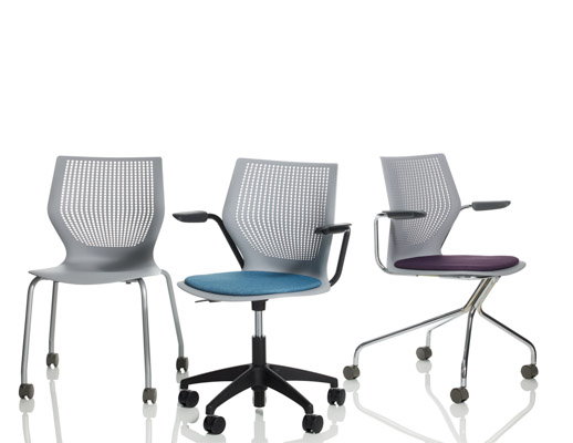 Therefore, each member of the MultiGeneration by Knoll family, which has continued to grow over the last 5 years, is designed to allow for and encourage movement, while still providing adequate support. The shape and material of the shell give the chairs a buoyancy that prevents the user from feeling “locked in” while the arm and leg positions allow for 270 degrees of movement.