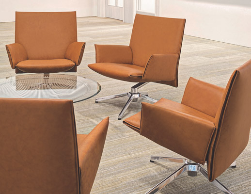Pilot is an innovative swivel lounge chair that marries visual and material lightness with exceptional comfort. The cantilevered seat, which features a unique upholstery substructure for greater flexibility, appears to float in the air, giving the chair a refined silhouette and an essential, timeless appeal.