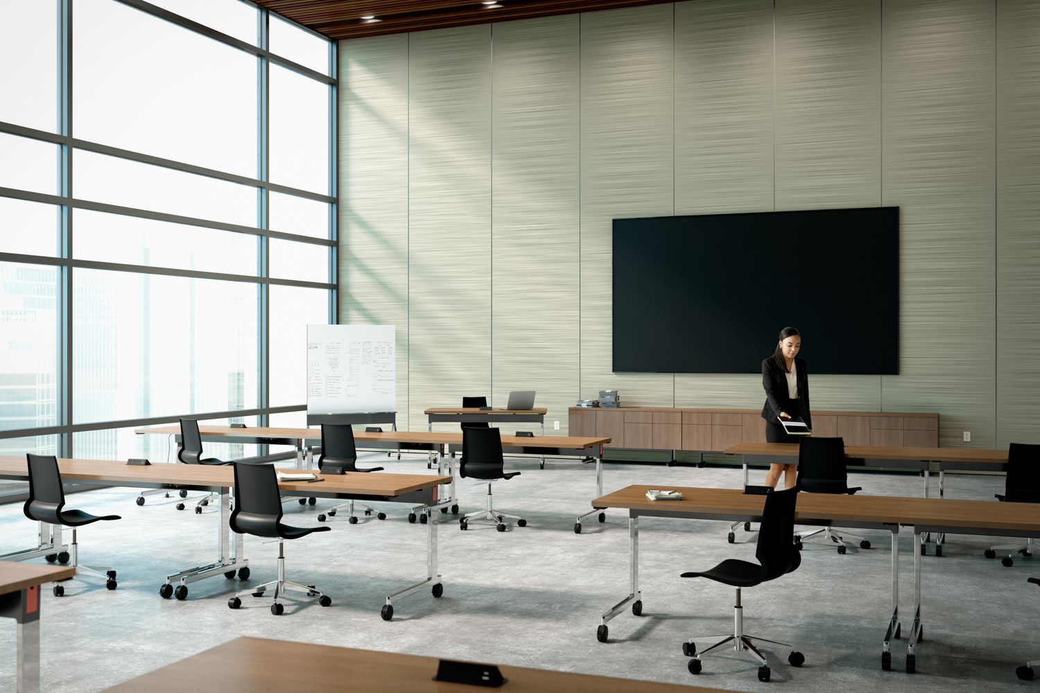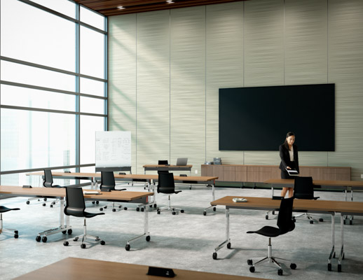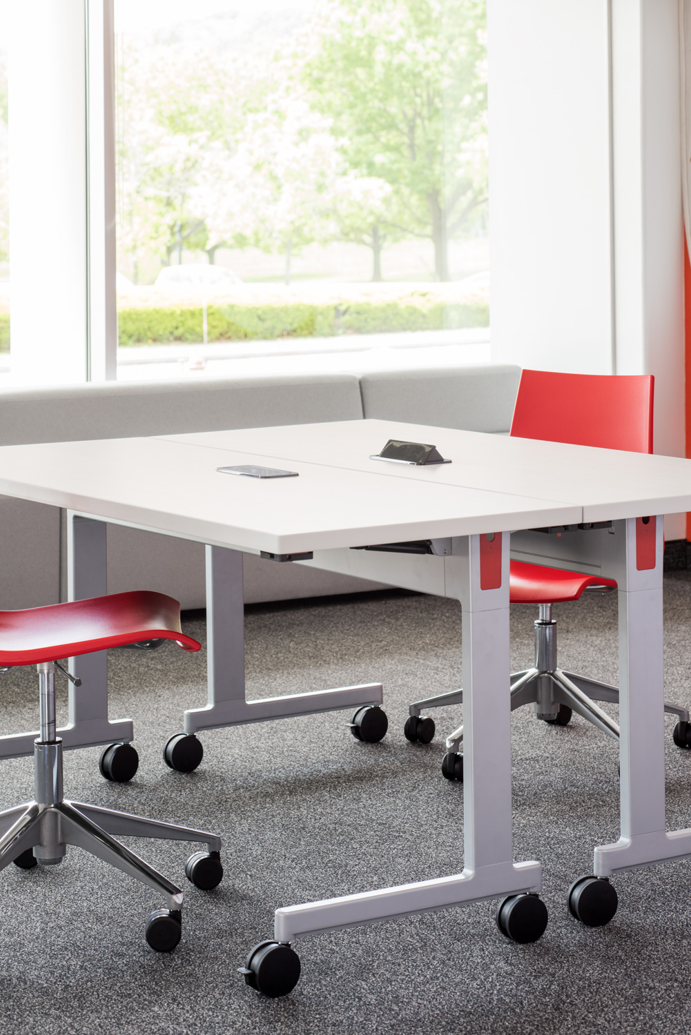 The intuitive Pixel Connect ganging bracket and flip mechanism make it easy to attach and separate tables, all by a single user. Tables can gang from all four sides, end-to-end or front and back. The integrated ganging bracket also acts as a leveler to create a seamless work surface when connecting tables.