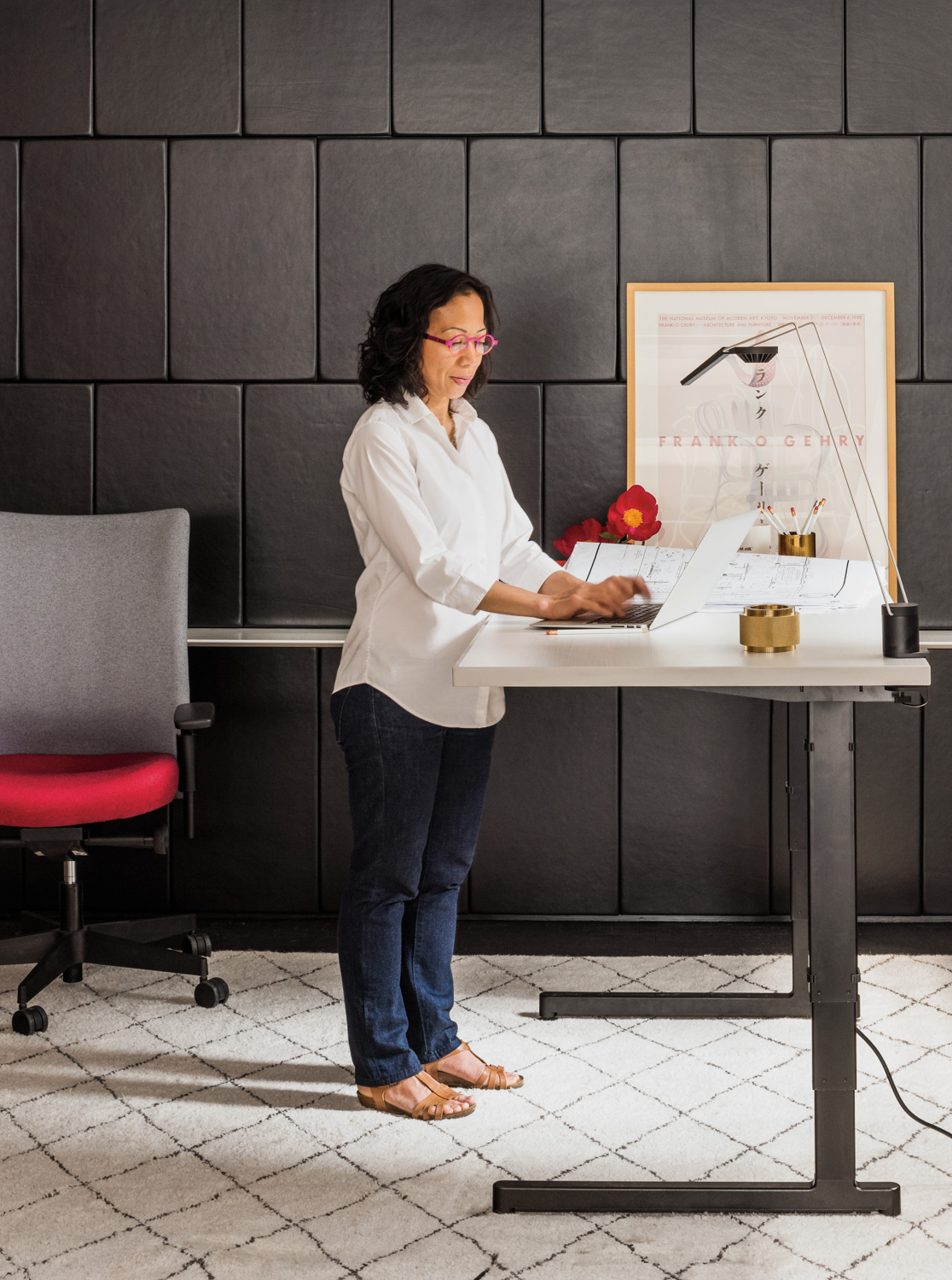 Our fully-featured model with an integrated wire management trough as well as height-adjustable options.