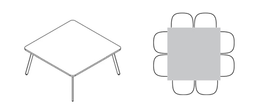 • 60" Table seats 4 armchairs (26") or 8 armless chairs (20")