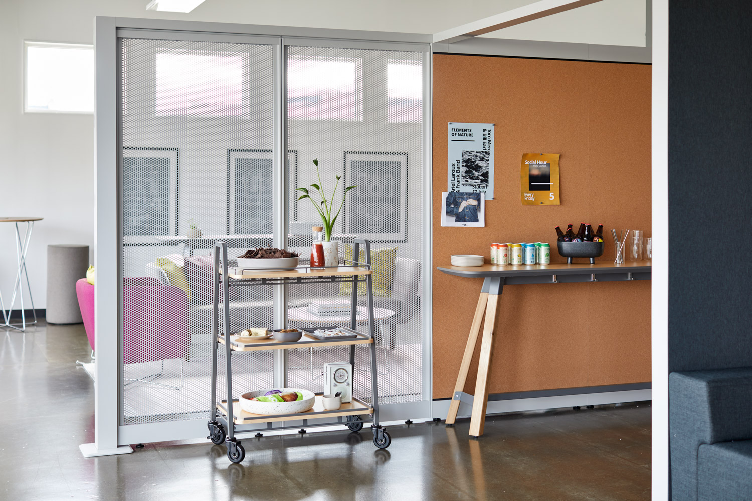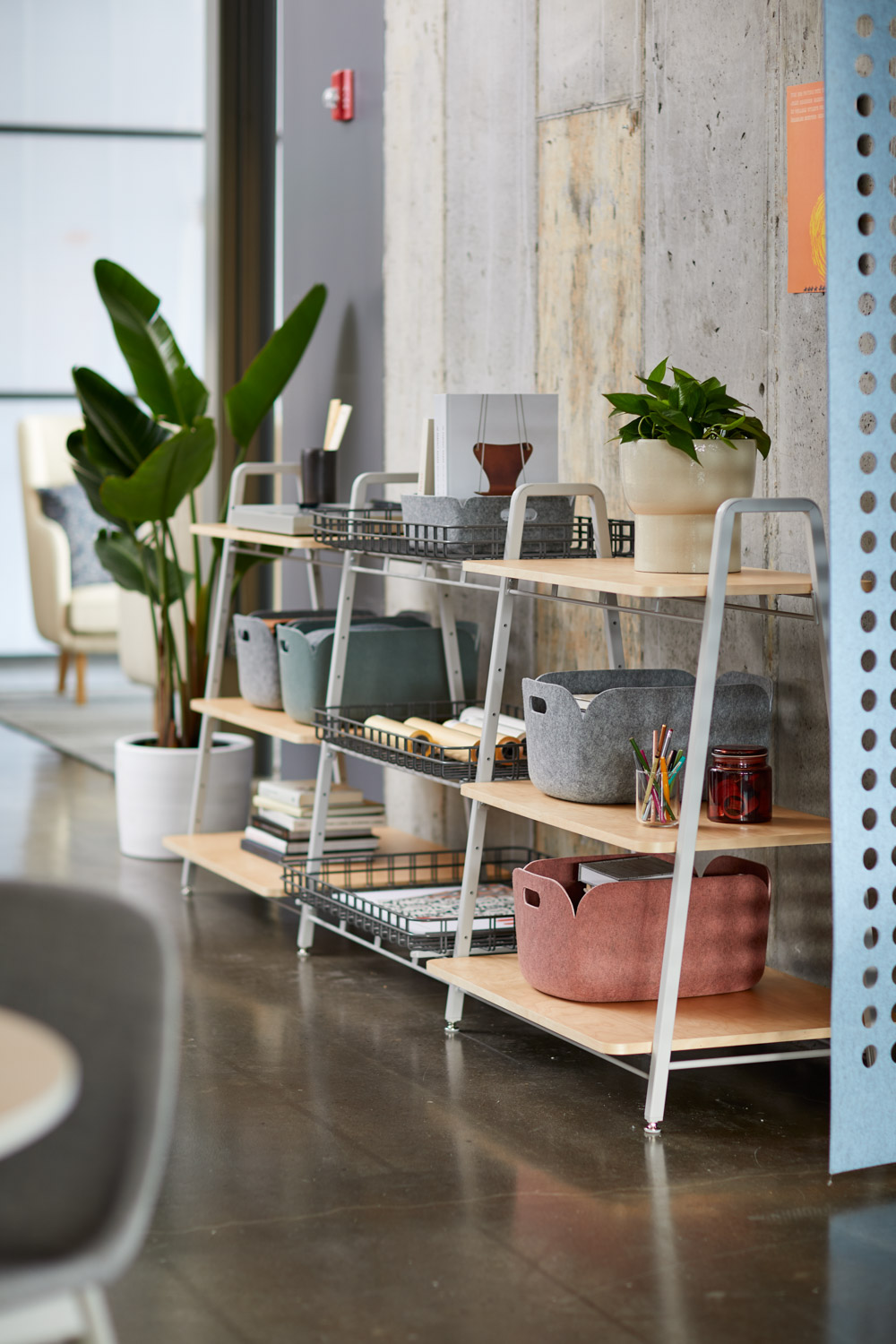 Rockwell Unscripted uses storage as an activator in the workplace, putting inspiration within reach by equipping spaces with easy-access, object-based storage. The hospitality cart brings the provisions (or the party) to you and your team. The mobile storage cart puts your work tools in a convenient place, for the hour or for the day, and provides an impromptu place to perch. Soft storage bins offer deep, partially-concealed storage for your grab-and-go essentials.