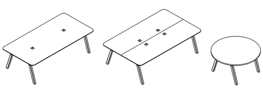Unscripted Sawhorse tables are a workhorse for task or team, bringing a constructive spirit to shared workspaces. The solid wood legs connect to the worksurface with a steel bracket that adds strength and style to this versatile table.
