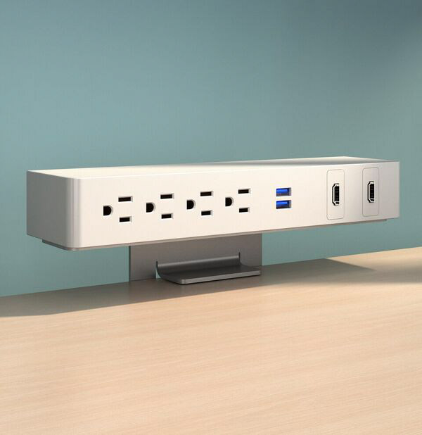 Under-mounted power strips are an ideal solution for helping manage cables in height-adjustable applications.