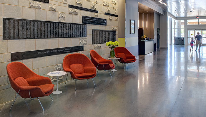 “Our old space was so fragmented,” says Vice President of Performance Management and Support Services Karen Schwartz. “It didn’t give the patients the impression we wanted of, ‘Hey, trust us. We can help guide you through this process.’”