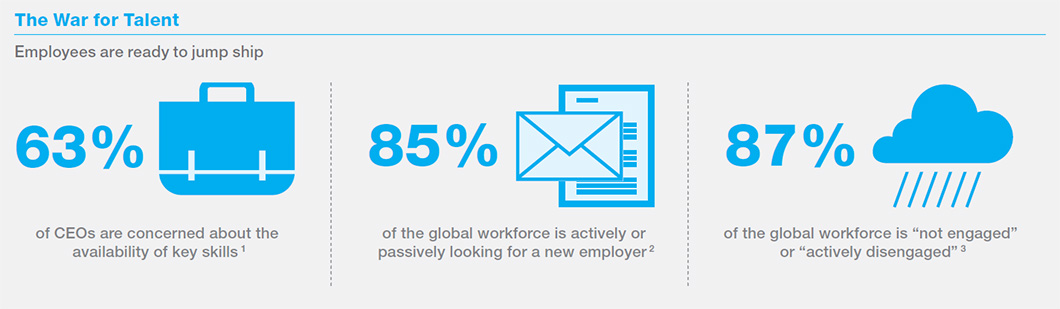 Figure 1. Based on research by PwC, LinkedIn, and Gallup, the days of employees being happy just to have a job are over. Employers that want to attract and retain the best and the brightest will need to fight for talent in the years ahead.