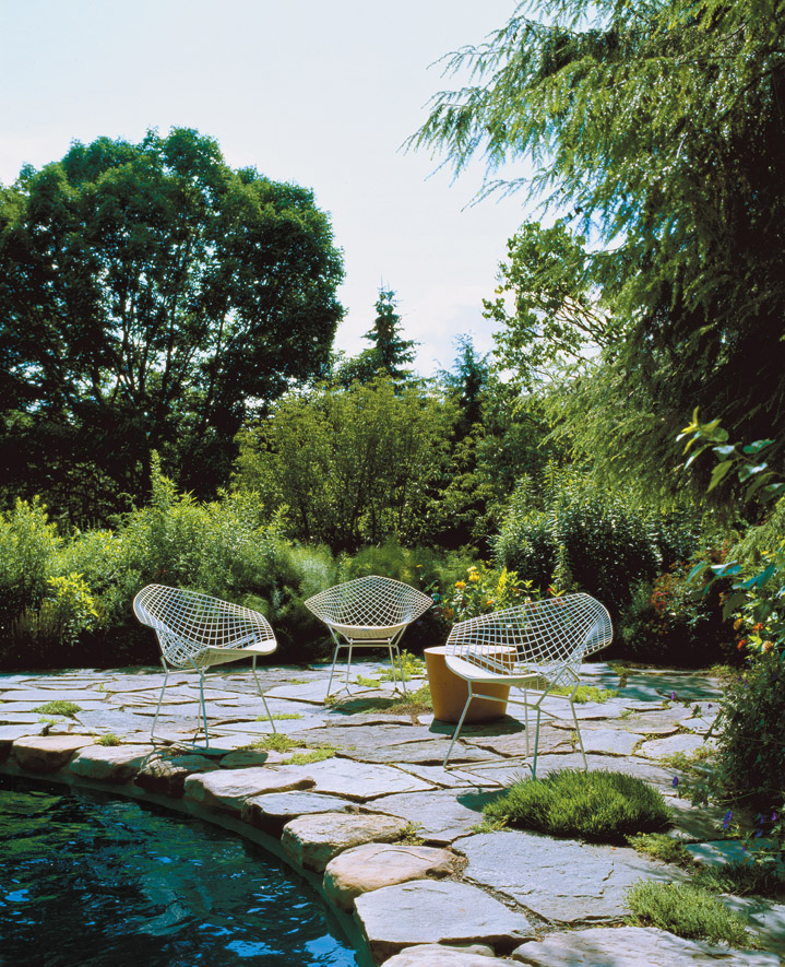 14720 | Outdoor Bertoia Diamond Chair and Saarinen Side Table