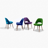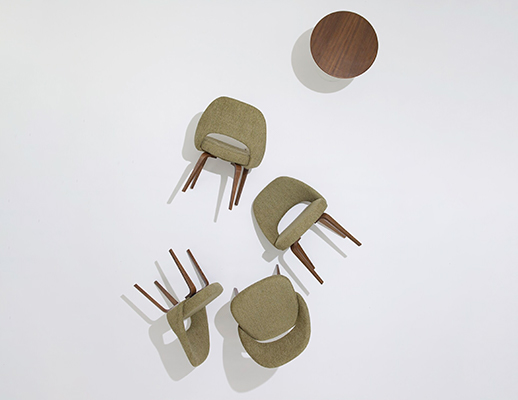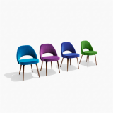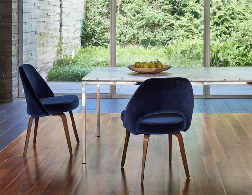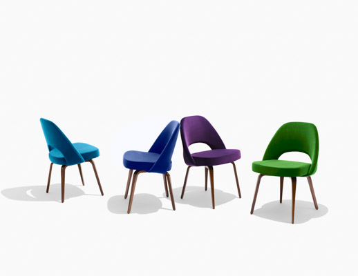 After completing the Womb Chair, Saarinen returned his focus to task seating, scaling down the concept and form of the womb into arm and armless chairs. Introduced as the 71 and 72 Series, the chairs replaced Florence Knoll’s model 43 chairs as the Planning Unit’s go-to seating solution. The iconic chair, often referred to as “that chair with the hole in the back,” has been a staple of the Knoll portfolio for more than 60 years.